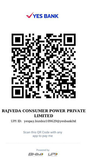 YES BANK Ac. Name : RAJVEDA CONSUMER POWER PRIVATE LIMITED A/C No. : 07046-19000-02989 IFSC Code : YESB0000704 Branch : NOIDA SECTOR 62, STELLER IT PARK